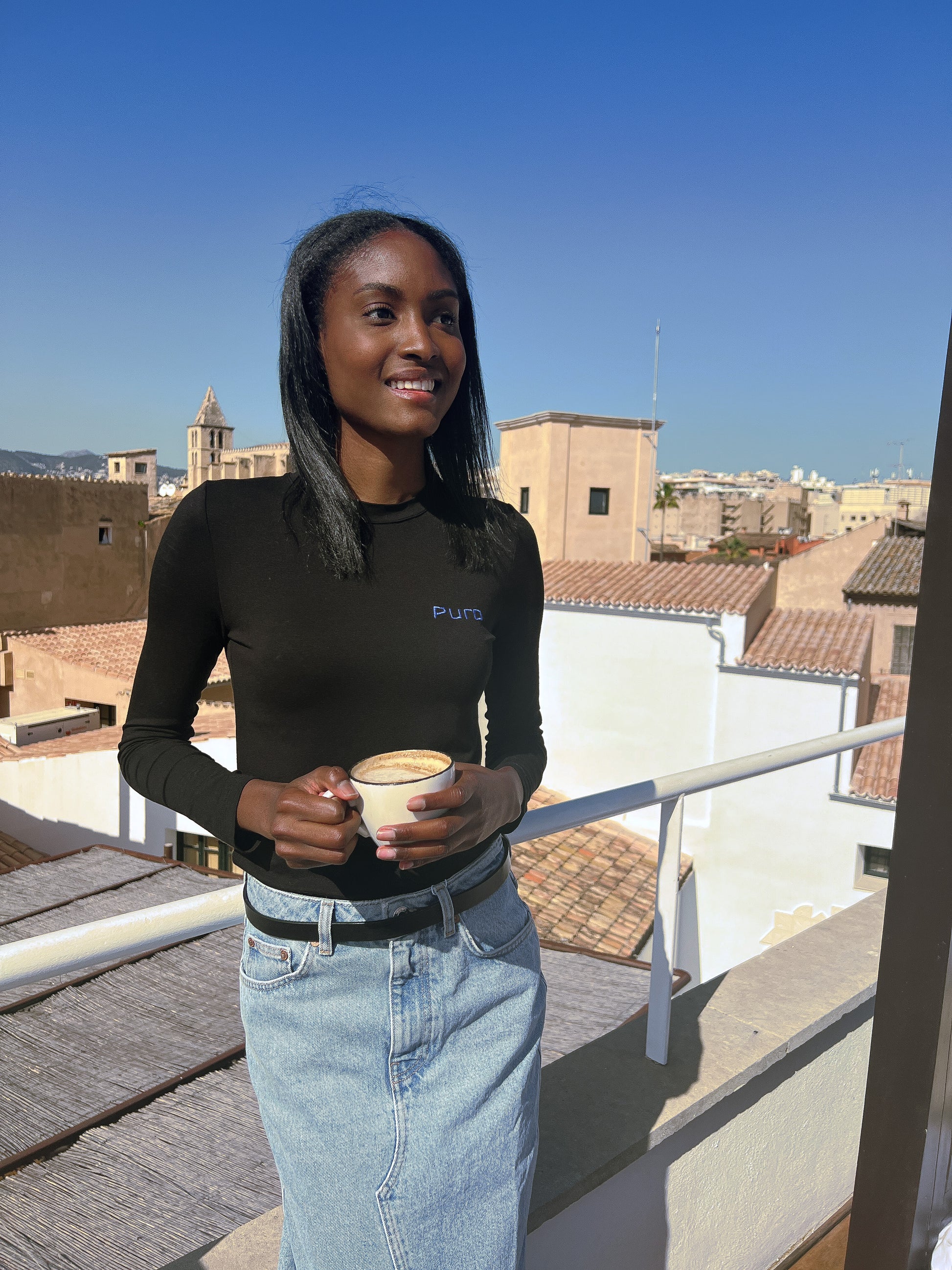 Slim fit t-shirt, PURO embroidery in a beautiful deep blue, Perfect for your day-to-day look or under a dress for a unique and different style for winter.