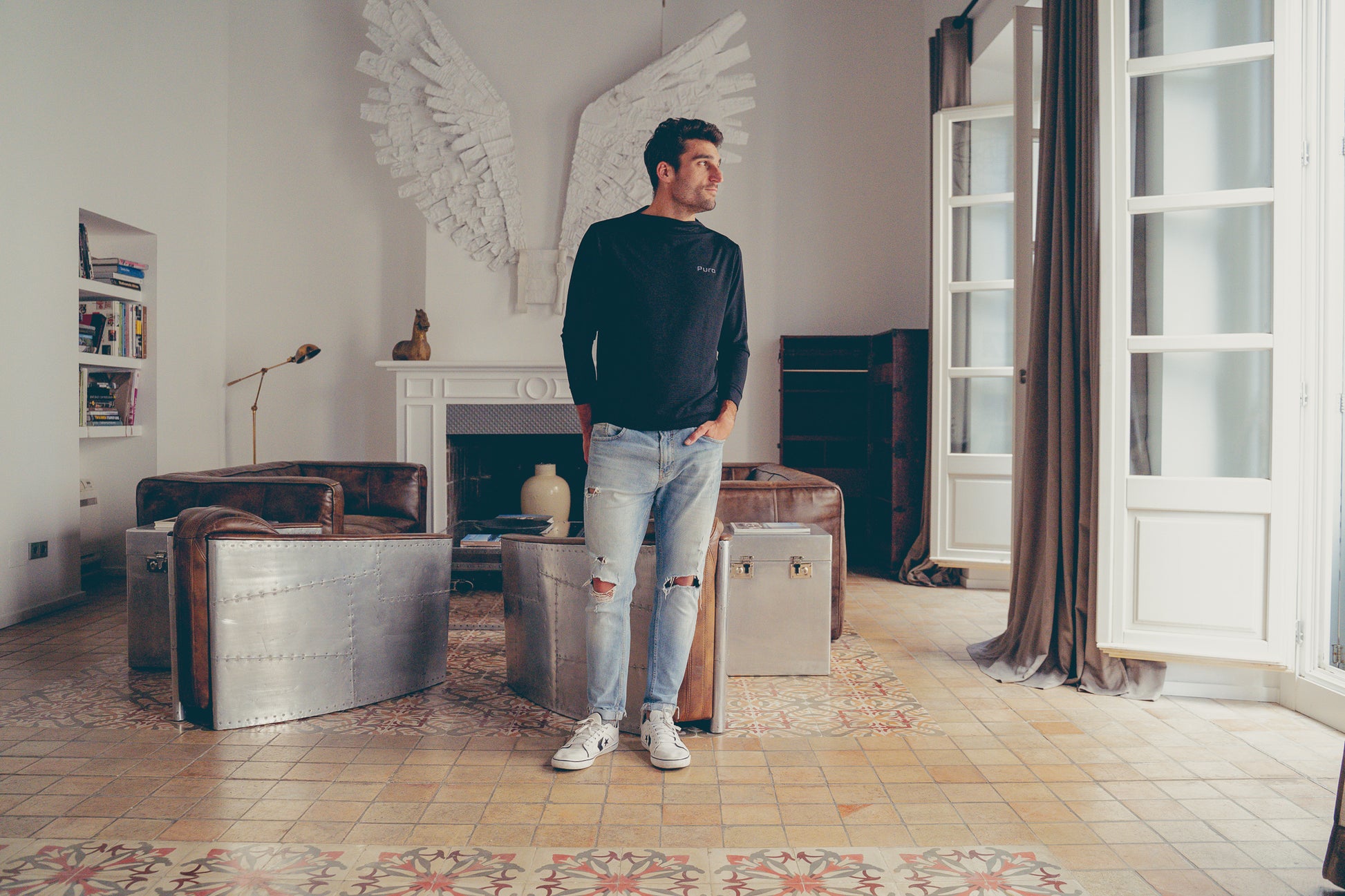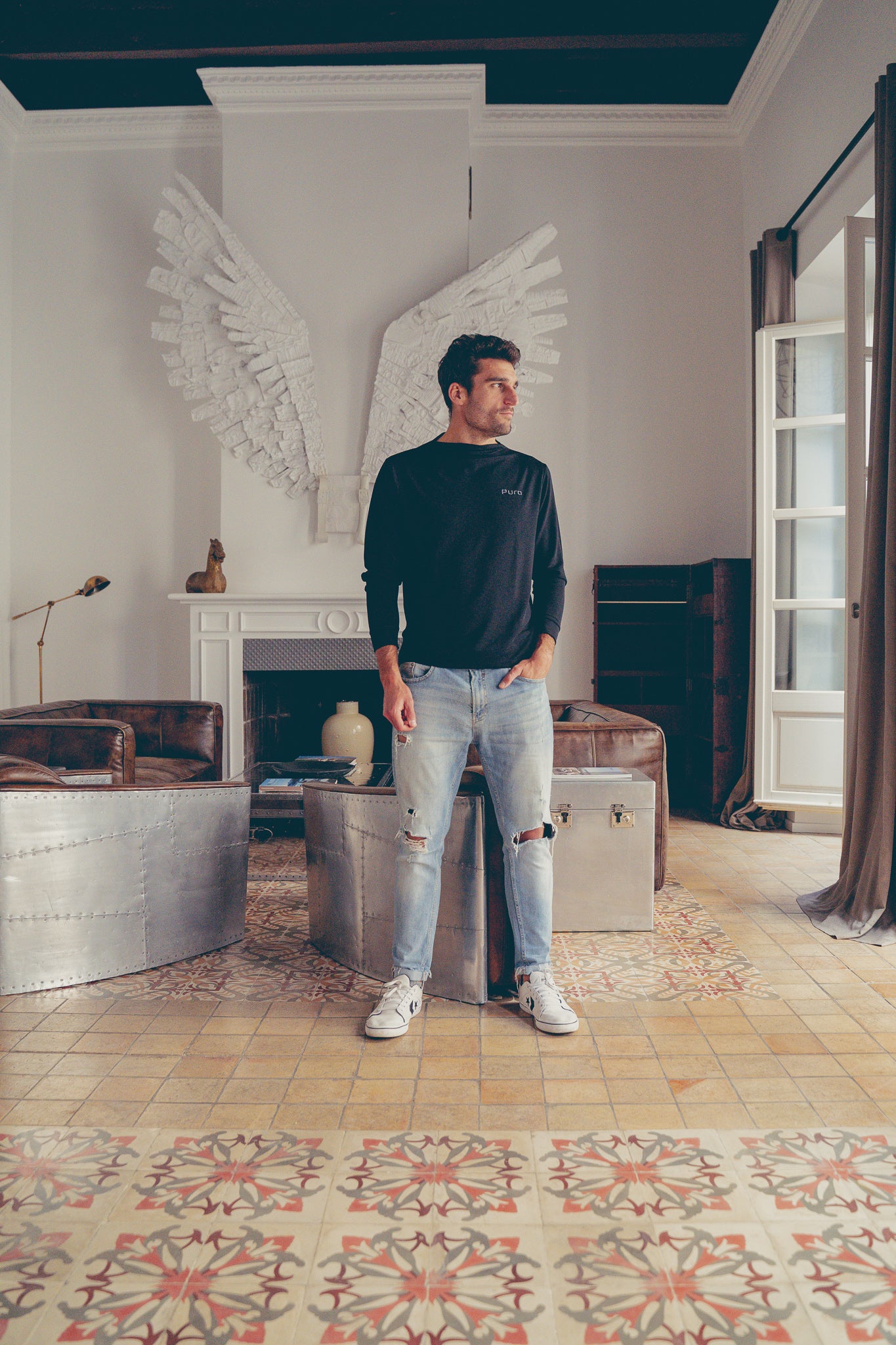 A different style for this cool jumper or sweatshirt, slighty high neck, soft touch and easy iron. PURO embroidery in grey. It's a must!