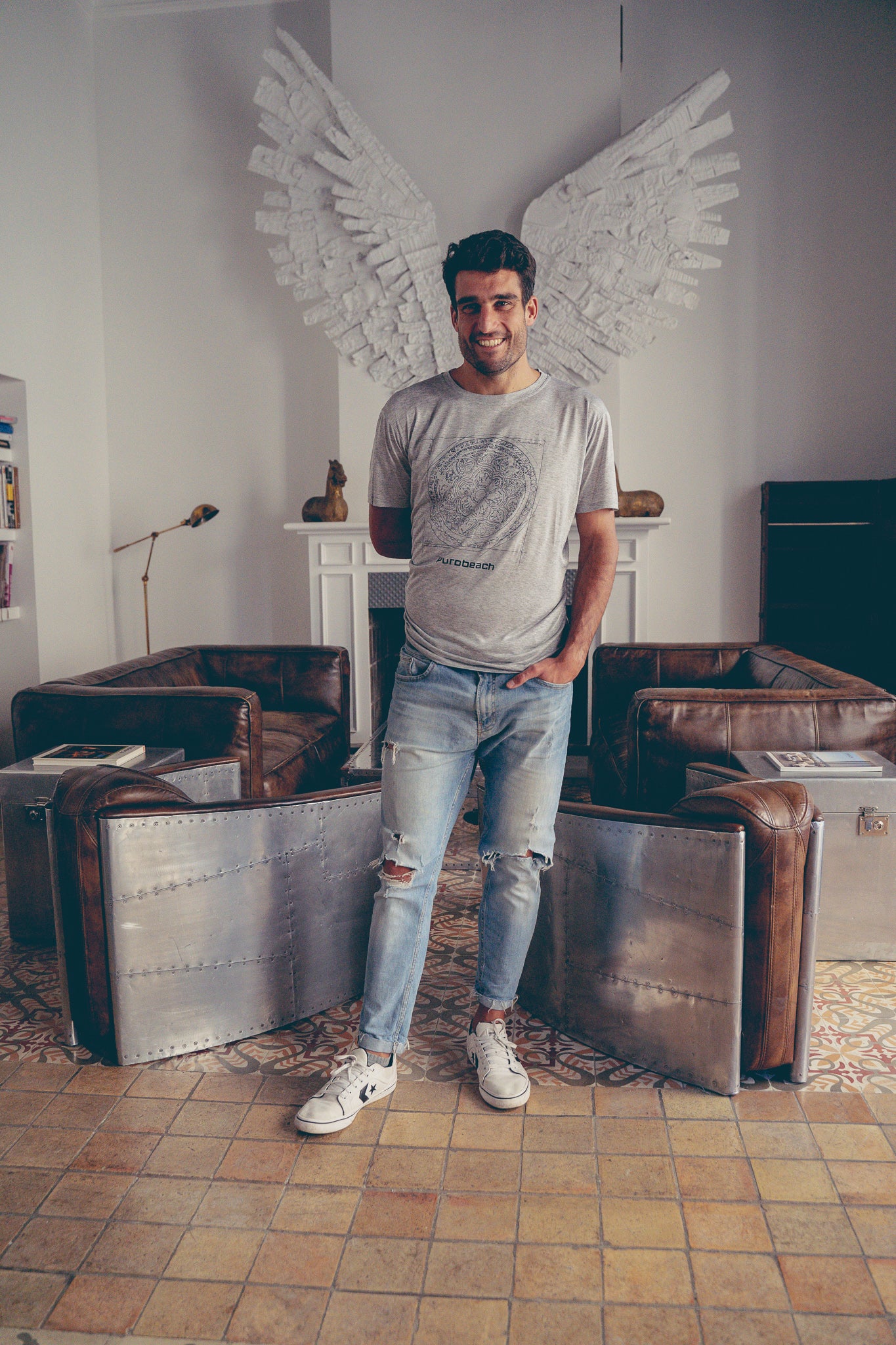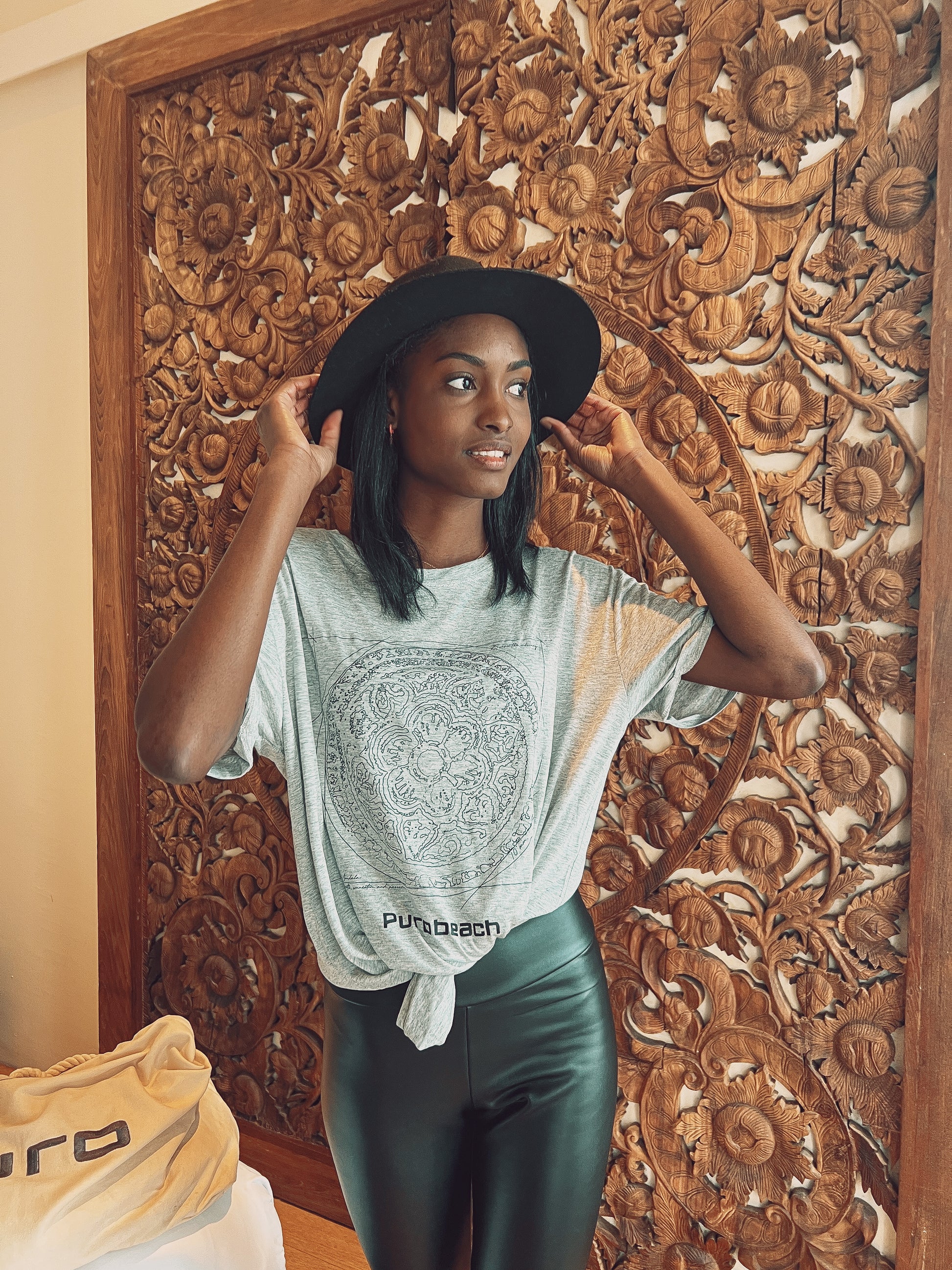 Viscose t-shirt, grey color and black print, our Mandala logo with a technical drawing inspiration. You will find these phrases in the print, in a very subtle and delicate way: "Escape the ordinary" and " Mandala: growth, connection and passion.