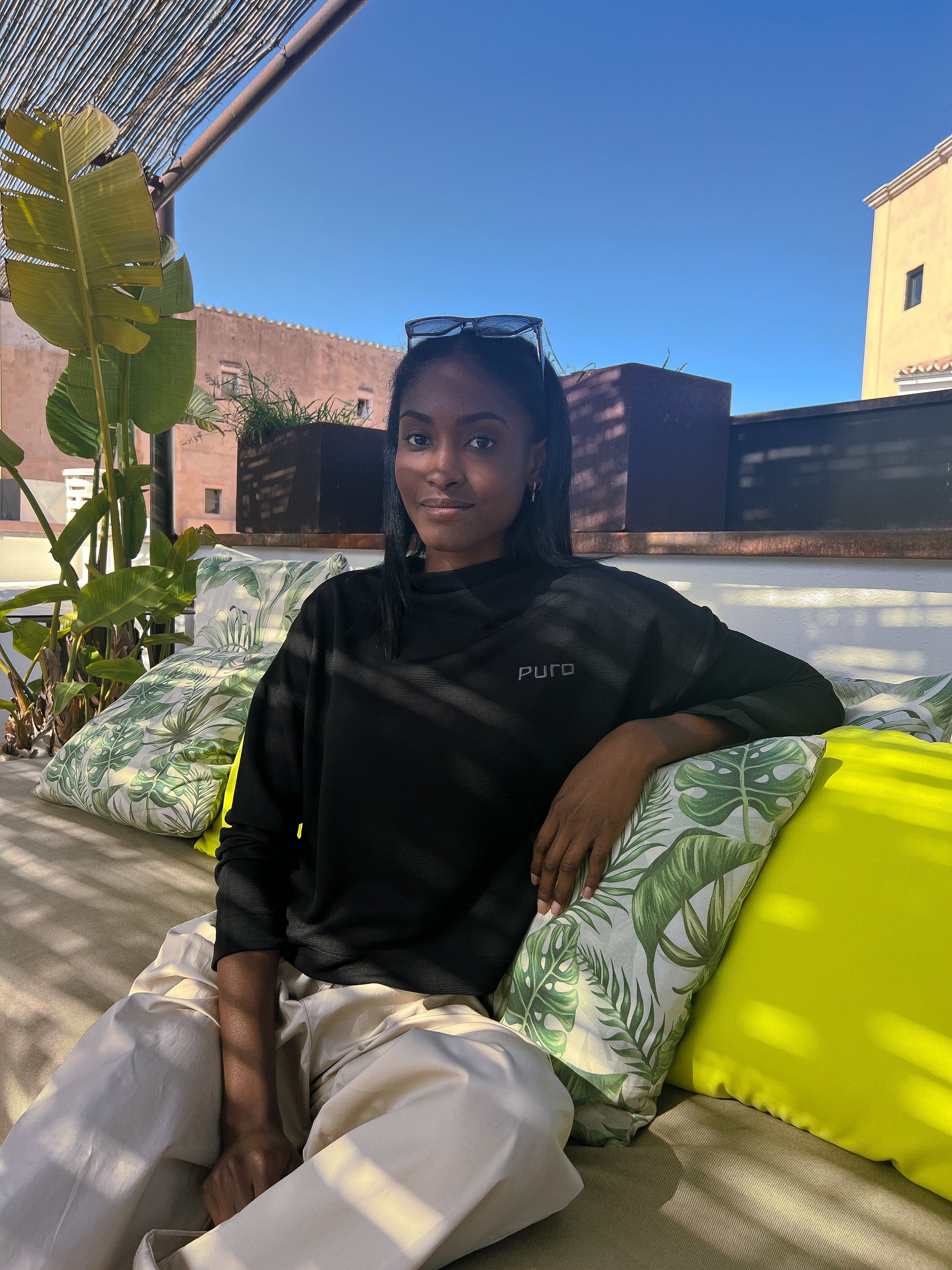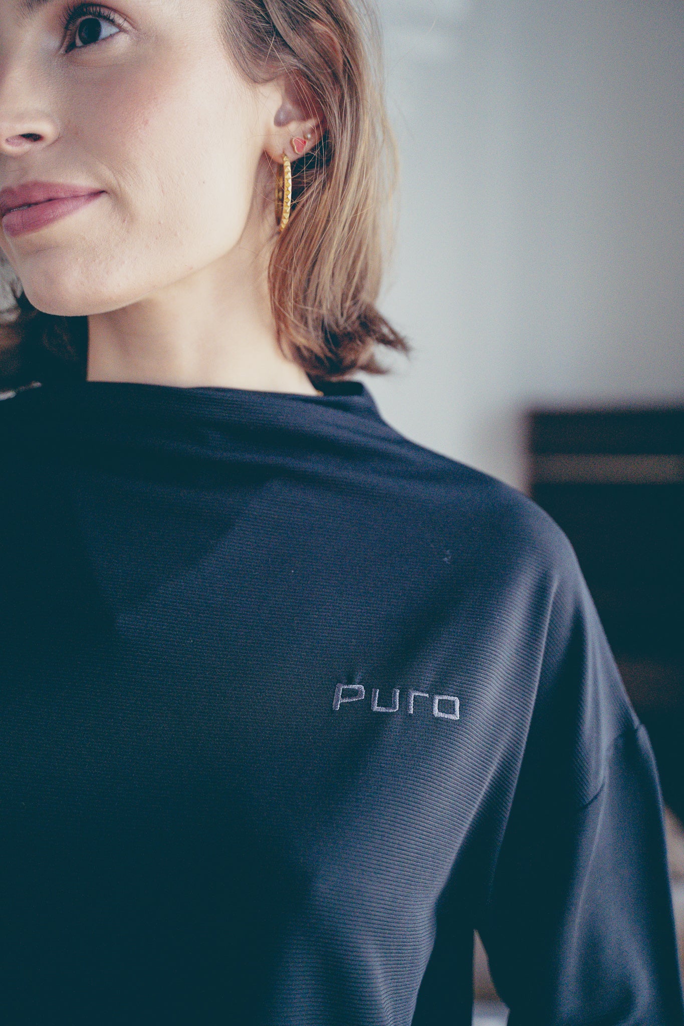 A different style for this cool jumper or sweatshirt, slighty high neck, soft touch and easy iron. PURO embroidery in grey. It's a must!