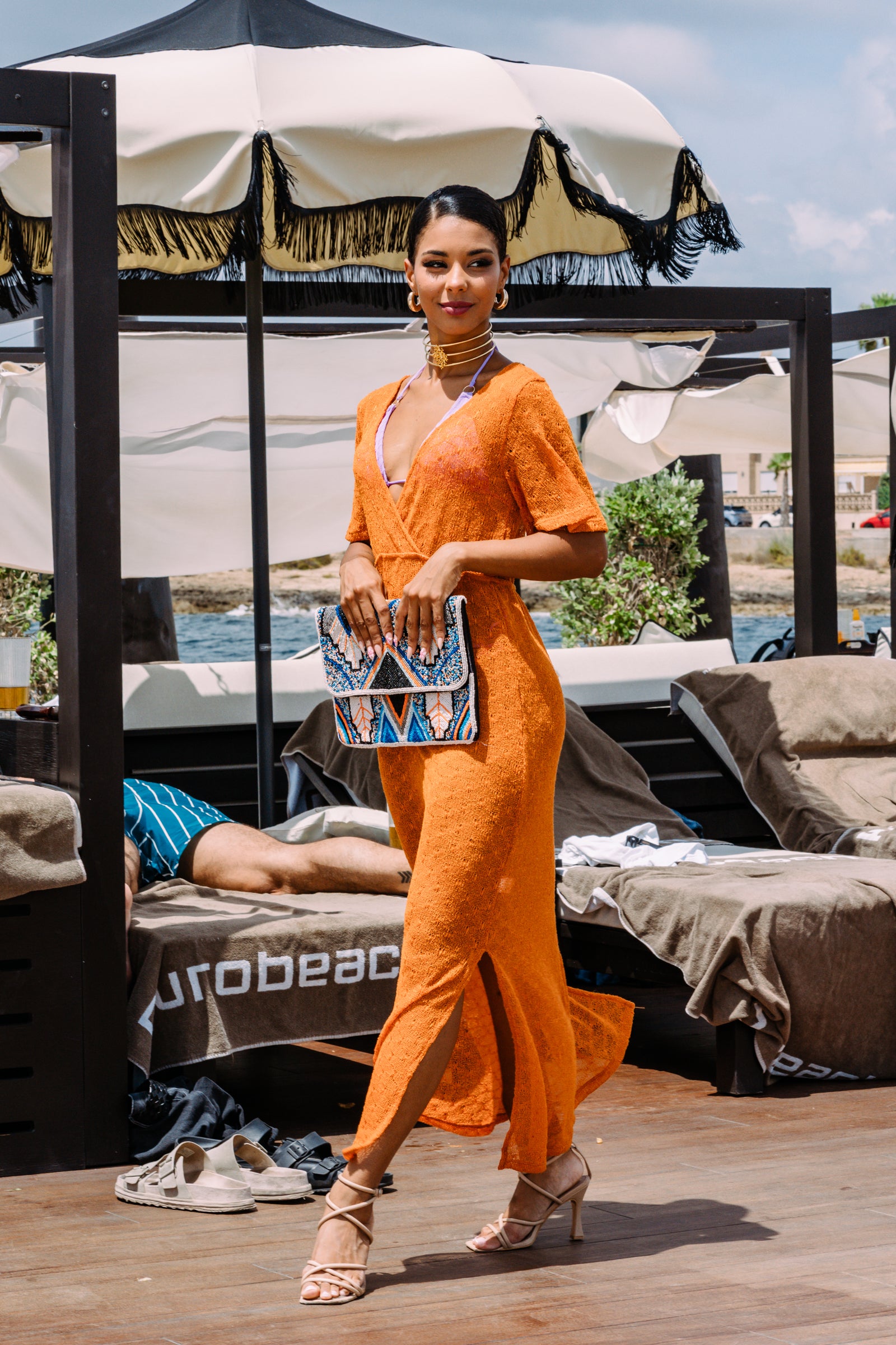Crochet dress with sequin detail that provide a delicate shine.