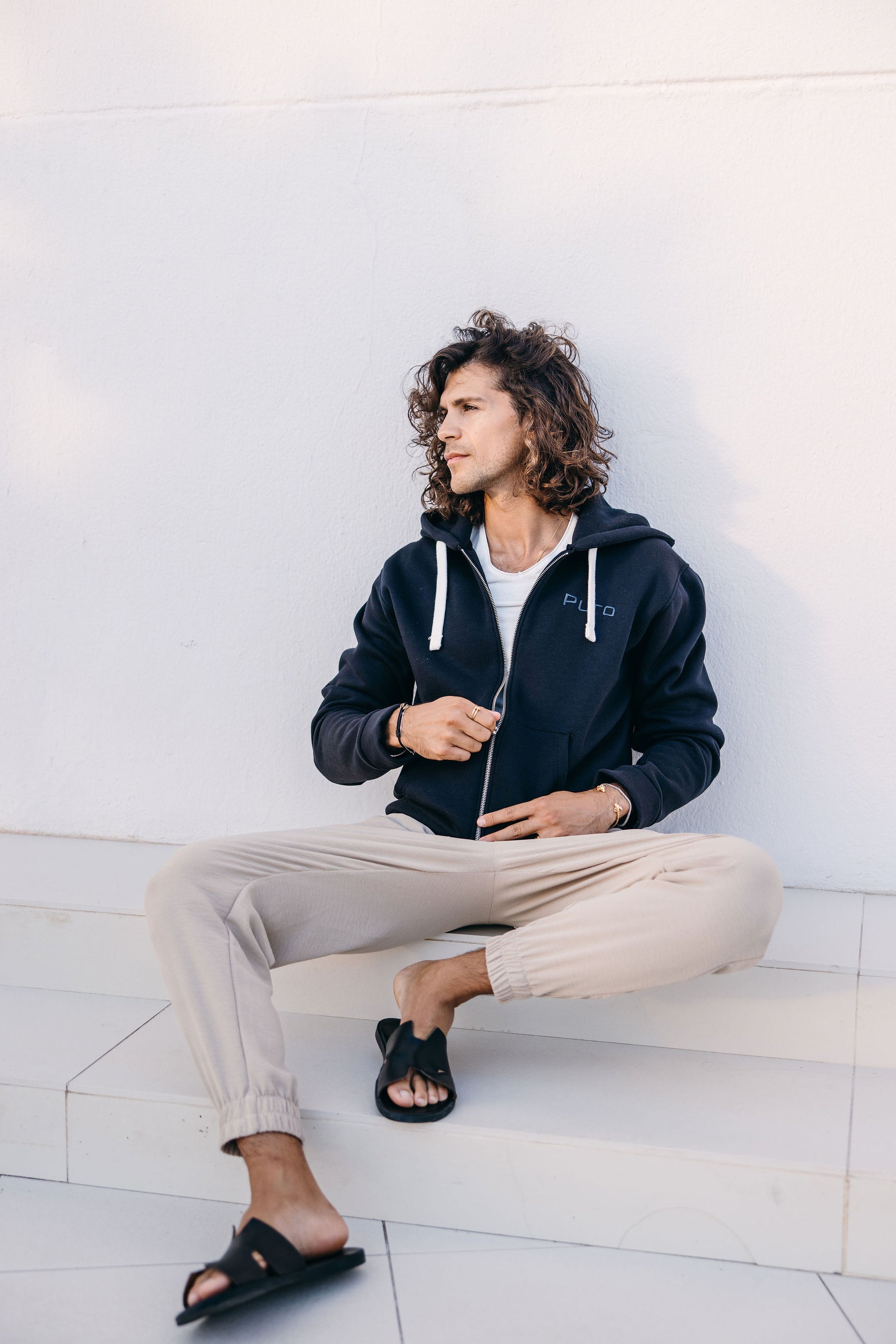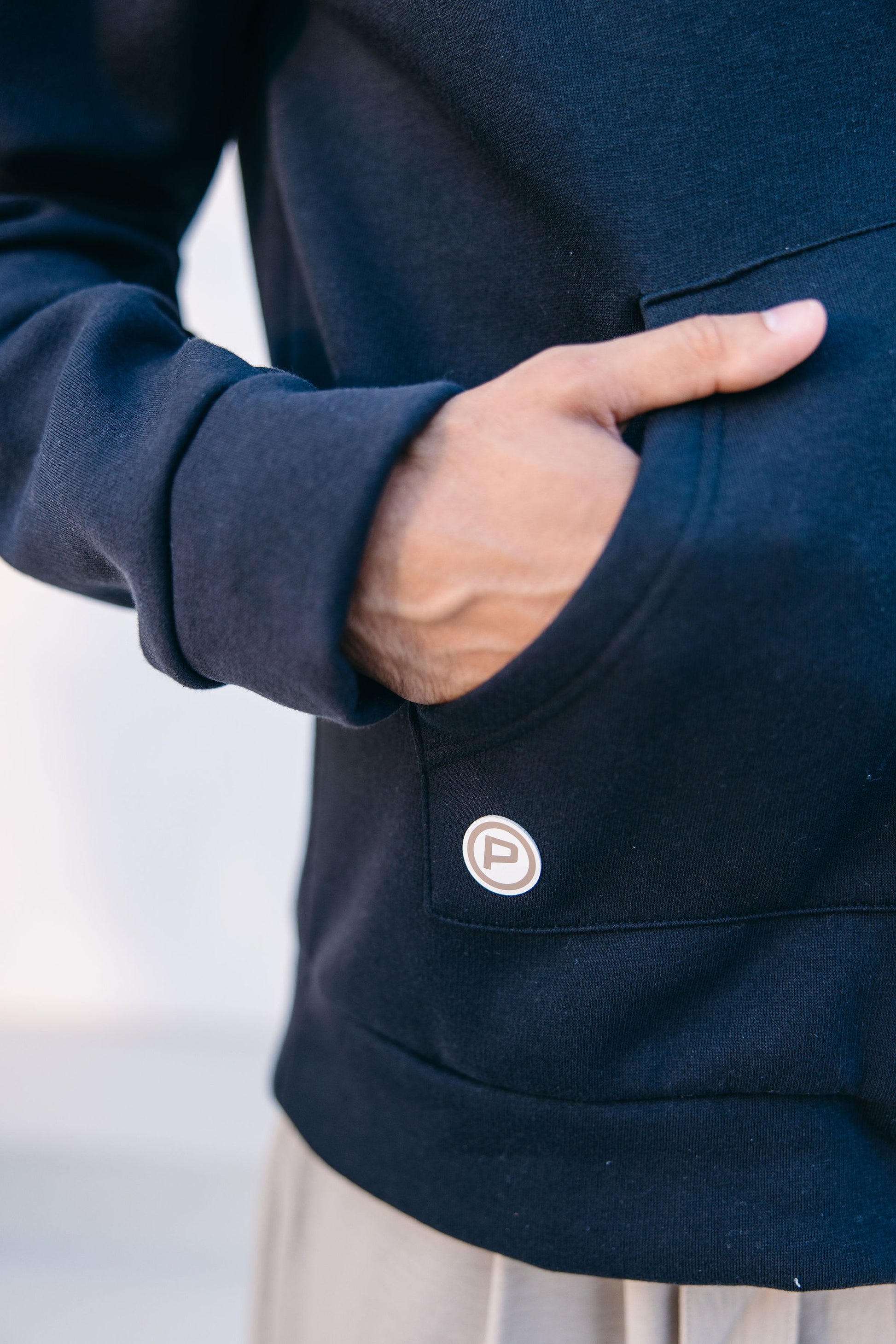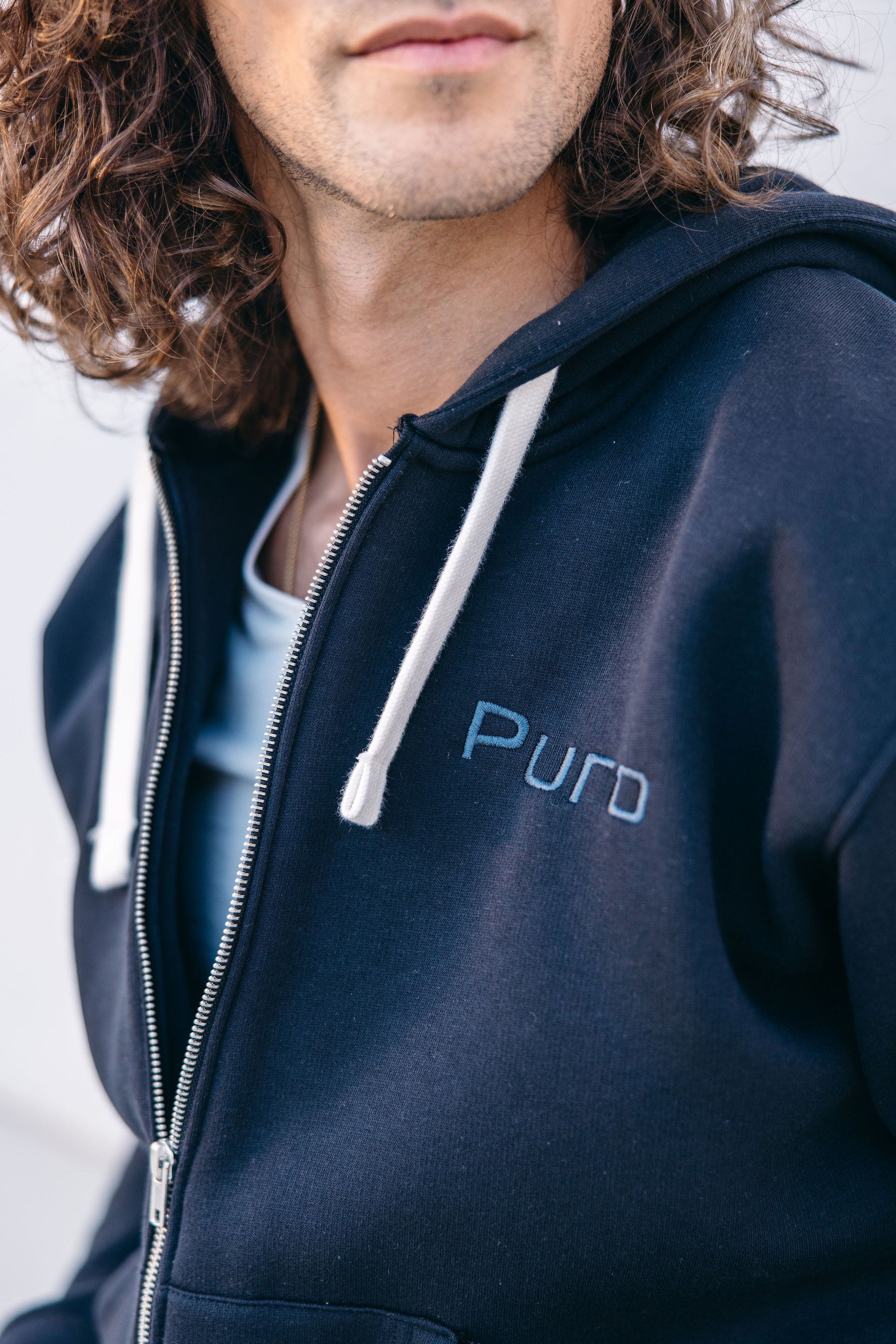 Puro details for this unisex sweatshirt, super comfortable and 100% cotton.