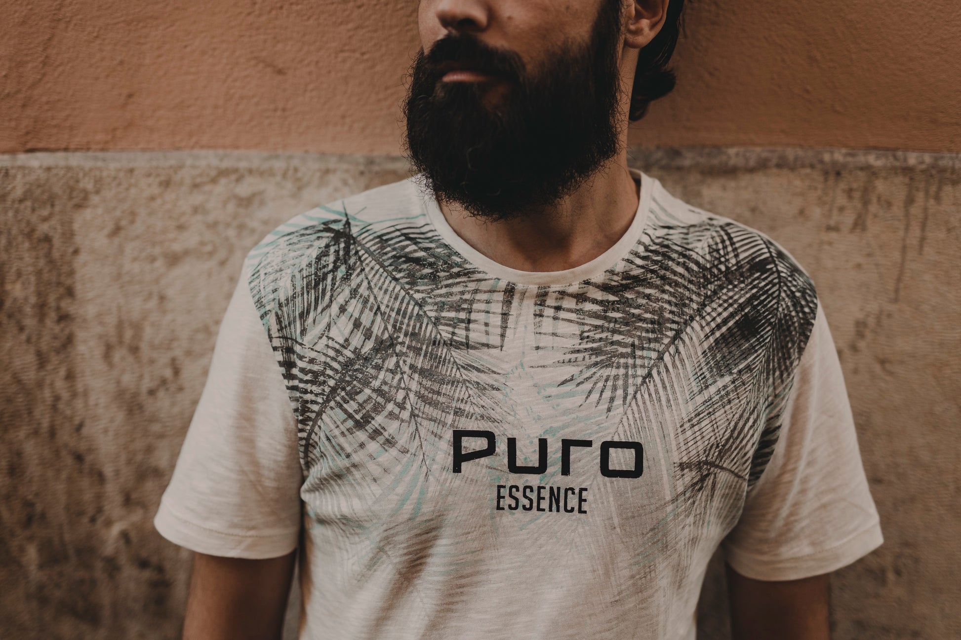 100% cotton T-shirt. Regular fit, round neckline with palm print. Extra soft finish.
