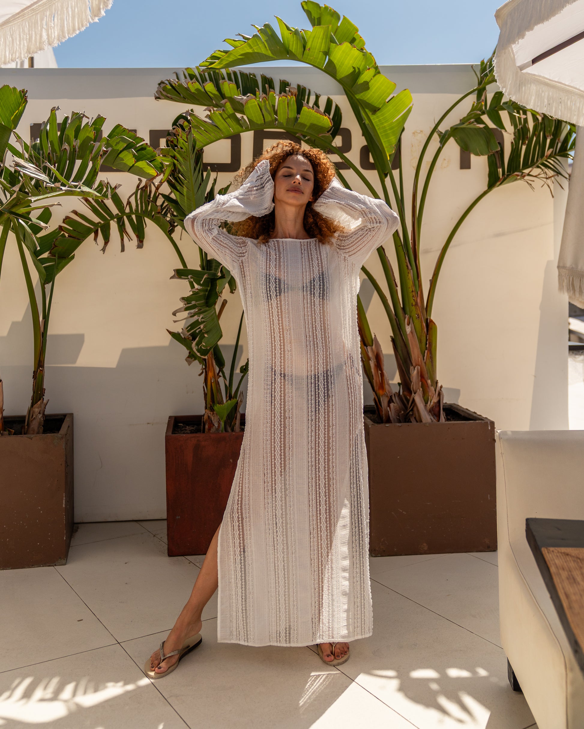 Largo, ligero y con un encanto sutil. Su tejido transparente y su corte fluido lo hacen ideal para lucir sobre el bikini o como capa elegante en un look relajado. Talla única, pura actitud mediterránea.